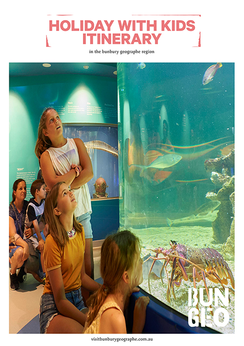 Fabulous fun for the family this school holidays! Find activities that the whole family genuinely loves in BunGeo. Check out Australia’s premier dolphin experience, seek a thrill on a zip line, eat a crunchy Donnybrook apple while playing at Australia’s biggest playground, meet quirky characters including gnomes, frogs and whimsical electrical boxes, have a selfie with a kangaroo, play on a farm, decorate gingerbread, taste cheese, climb the big orange and so much more. Learn more about the fabulous things to do with kids in our 2019 edition of Holiday with Kids in BunGeo Download the guide for travel inspiration and to find cool activities and family-friendly venues. This school holidays there are also loads of events and activities on offer, including SHIFT 2019 Youth Festival, Optus Volley by the Bay, Donnybrook Apple Festival, Grandfamilies Day @ Bunbury Wildlife Park, BRAG Street Art Tour with Andrew Frazer, National Hansa Sailing Championships, Bunbury Show, Myalup Easter Fair, Harvey Agricultural Show, Stirling Street Arts Centre School Holiday Workshops. See our Events page for details. BunGeo x
