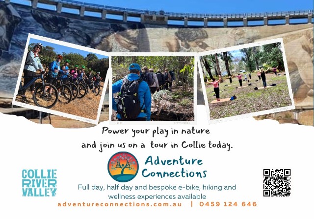 Adventure Connections Adventure Connections is a social enterprise with a mission to heal the body mind and soul through adventure therapy. Nestled in a corner of the world where you’ll find an abundance of world class hiking and mountain biking trails, stunning blue lakes and the world’s largest mural, Adventure Connections provides authentic, nature based experiences, that harness the therapeutic power of nature, fresh air and movement to disconnect you from the stress of everyday, so you can unwind, relax and recharge. From inspiring self-esteem and resilience with youth adventure programs to creating a space for reconnection and relaxation with weekend wellness getaways, Adventure Connections offers experiences for people of all ages looking for much more than just a holiday. So, come get your nature dose in the Collie River Valley, feel the sand between your toes, cool off in the river and feel the connection to country, as you reconnect with yourself. Contact Phone:0459 124 646 Visit Website Email:[email protected] Get Directions Media Trade Business Events Corporate Contact Us
