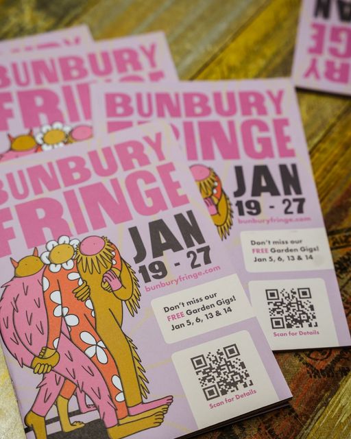Home » Events » Events List » Bunbury Fringe 2024 with Fringe Buddies Back to Events Bunbury Fringe 2024 with Fringe Buddies 6 January 2024 – 28 January 2024 8:00 AM – 9:00 PM Fringe Buddies are incredible local businesses, groups and organisations who join the fun of Fringe and arrange their very own satellite shows, workshops and events during the month of Fringe. Check out all these events on https://www.bunburyfringe.com/fringe-buddies-2024 Please note that venues are across the CBD, Outer Bunbury and Australind. For further information visit: https://www.bunburyfringe.com/fringe-buddies-2024